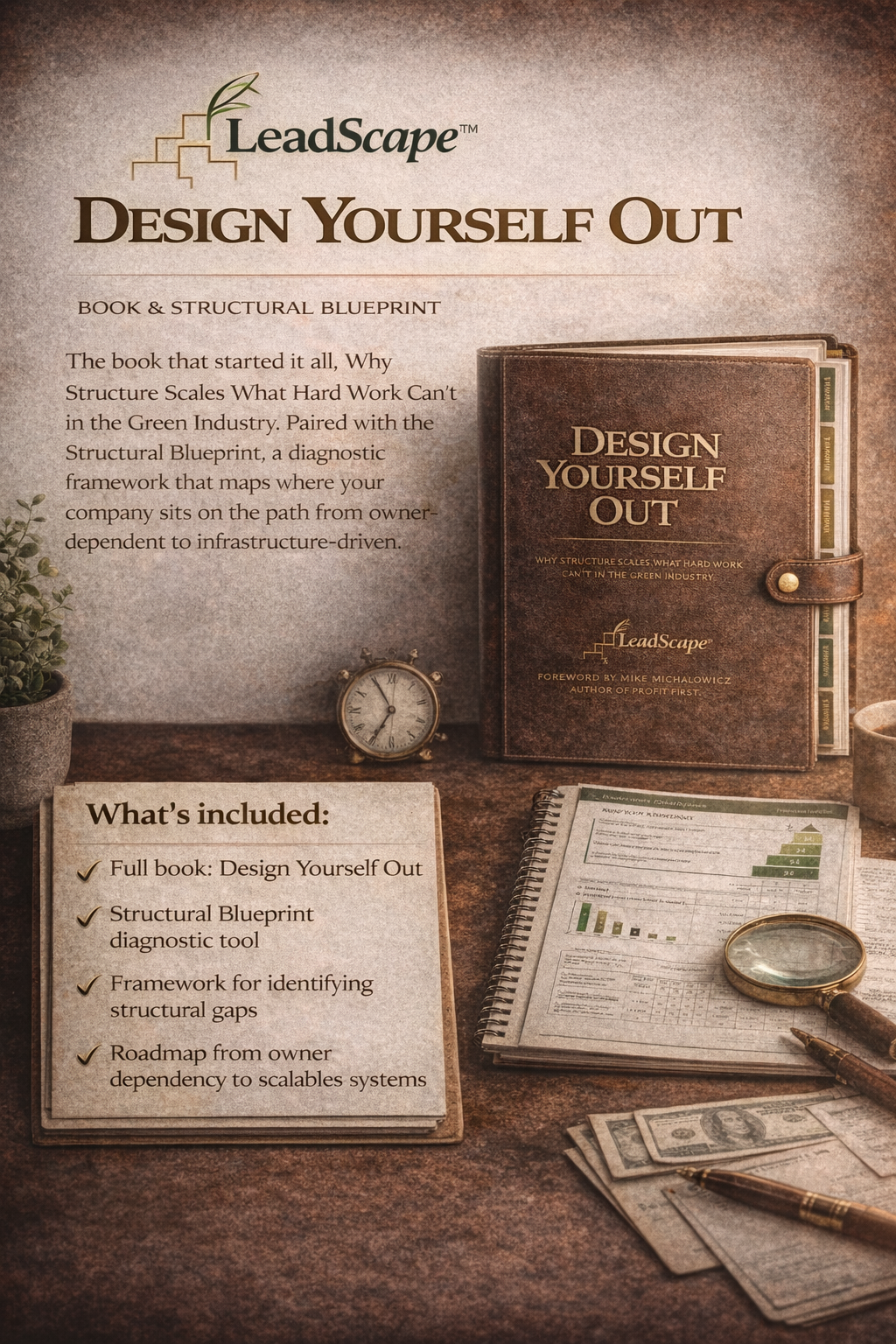 The book that started it all. Why Structure Scales What Hard Work Can't in the Green Industry. Paired with the Structural Blueprint, a diagnostic framework that maps where your company sits on the path from owner-dependent to infrastructure-driven.